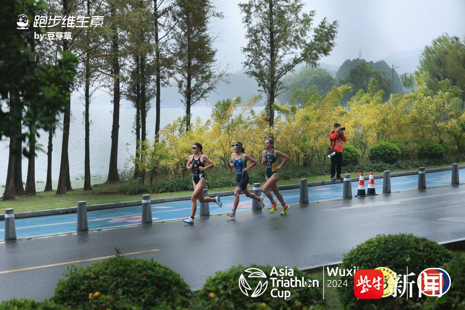 秋日的无锡非常凉爽,太湖畔的空气又格外清新,伴随着淅淅沥沥的小雨,城市的温度有点低,但铁人三项运动的热情让现场沸腾。上午9点,2024年无锡铁人三项亚洲杯赛男子优秀组选手率先出发,不到一个小时,已有选手出现了距离赛程终点冲线的不远处。