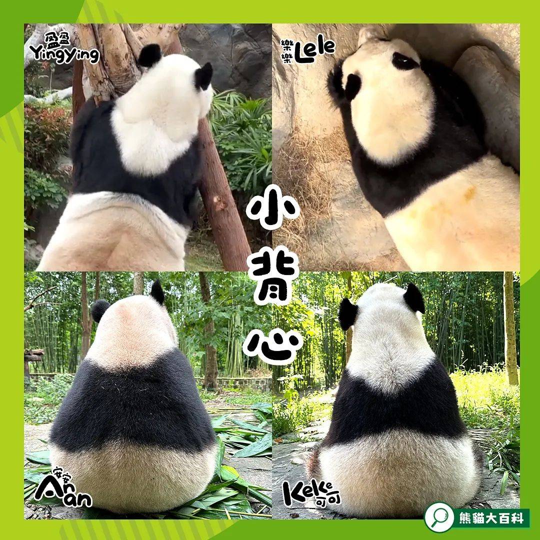 大熊猫“盈盈”的“小背心”是“深V”型的,“乐乐”的“小背心”则是“圆领”的。新加入香港大熊猫家庭的“安安”和“可可”,一个拥有“梯形”的“小背心”,一个则是迷人的“蝴蝶型”。