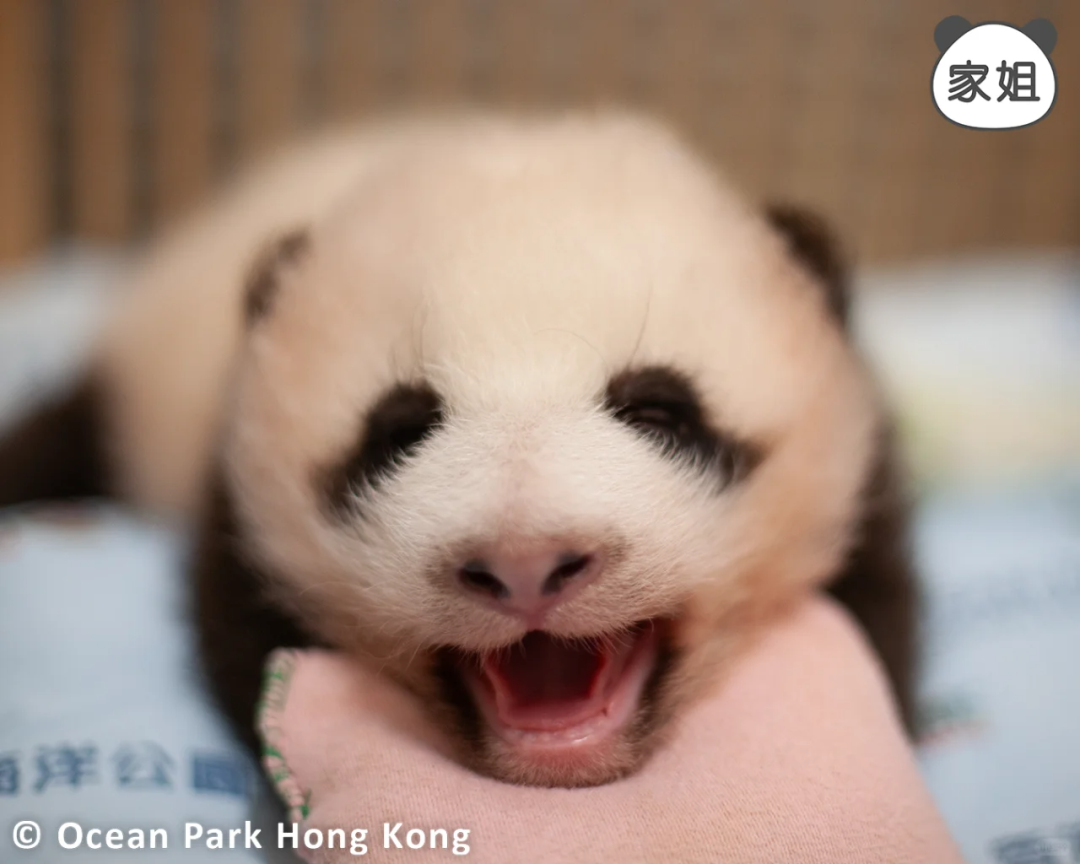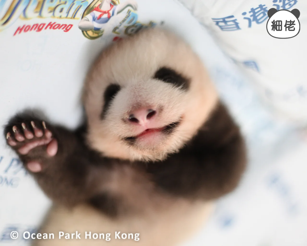 香港海洋公园表示,每一只大熊猫的“小背心”都是独一无二的。