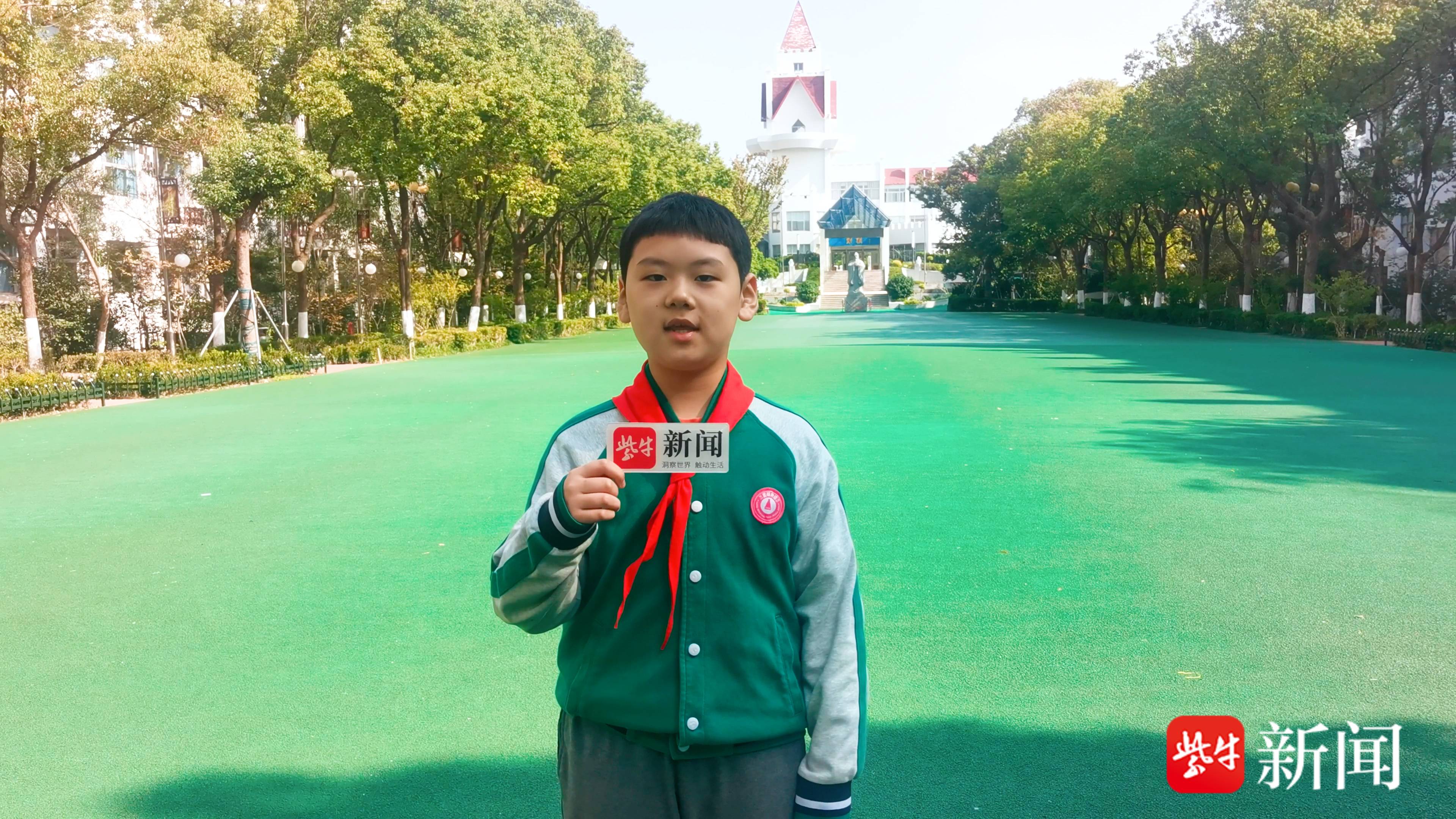 11月12日,扬子晚报/紫牛新闻记者走进苏国外校园,采访了“小主播”李彦伯。“我从小就非常喜欢朗诵。从幼儿园开始我就参加了很多朗诵比赛。《少年中国说》是梁启超先生写的一篇散文,呼吁年轻人为拯救民族危机、振兴中华而奋斗。从小爸爸妈妈就教育我做一个对他人有帮助、对社会有贡献的孩子,所以当时我就选了这篇散文来朗诵。”