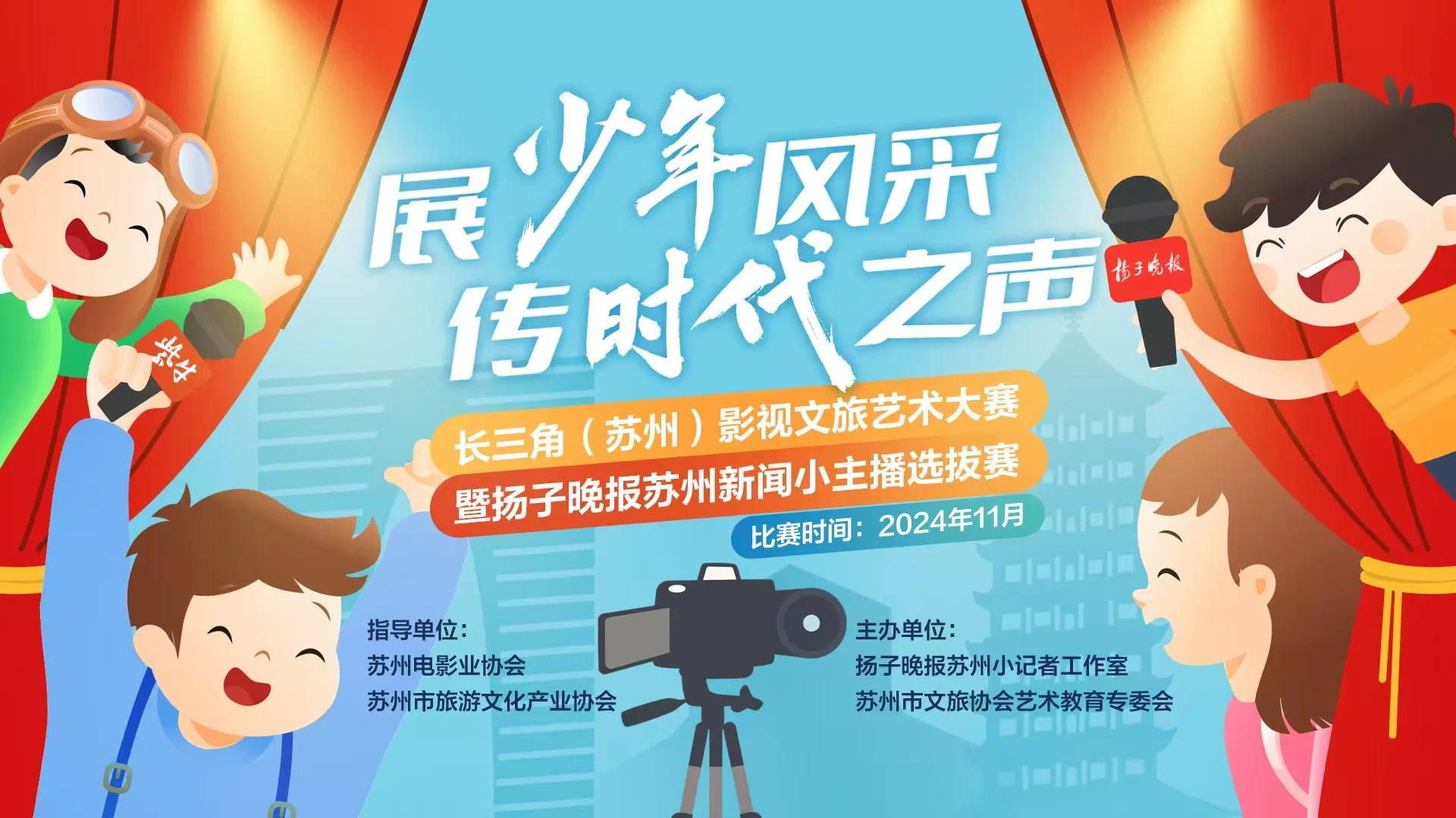 小主播大梦想!近日,由扬子晚报苏州小记者工作室与苏州市文旅协会艺术教育专委会联合举办的“展少年风采,传时代之声”长三角(苏州)影视文旅艺术大赛暨扬子晚报苏州新闻小主播选拔赛线上报名环节正火热进行中。此次比赛吸引了来自苏州大市范围内60多所学校的学生积极参与,他们通过线上报名的方式提交了自己的参赛作品,展现了在语言艺术方面的才华与潜力。
