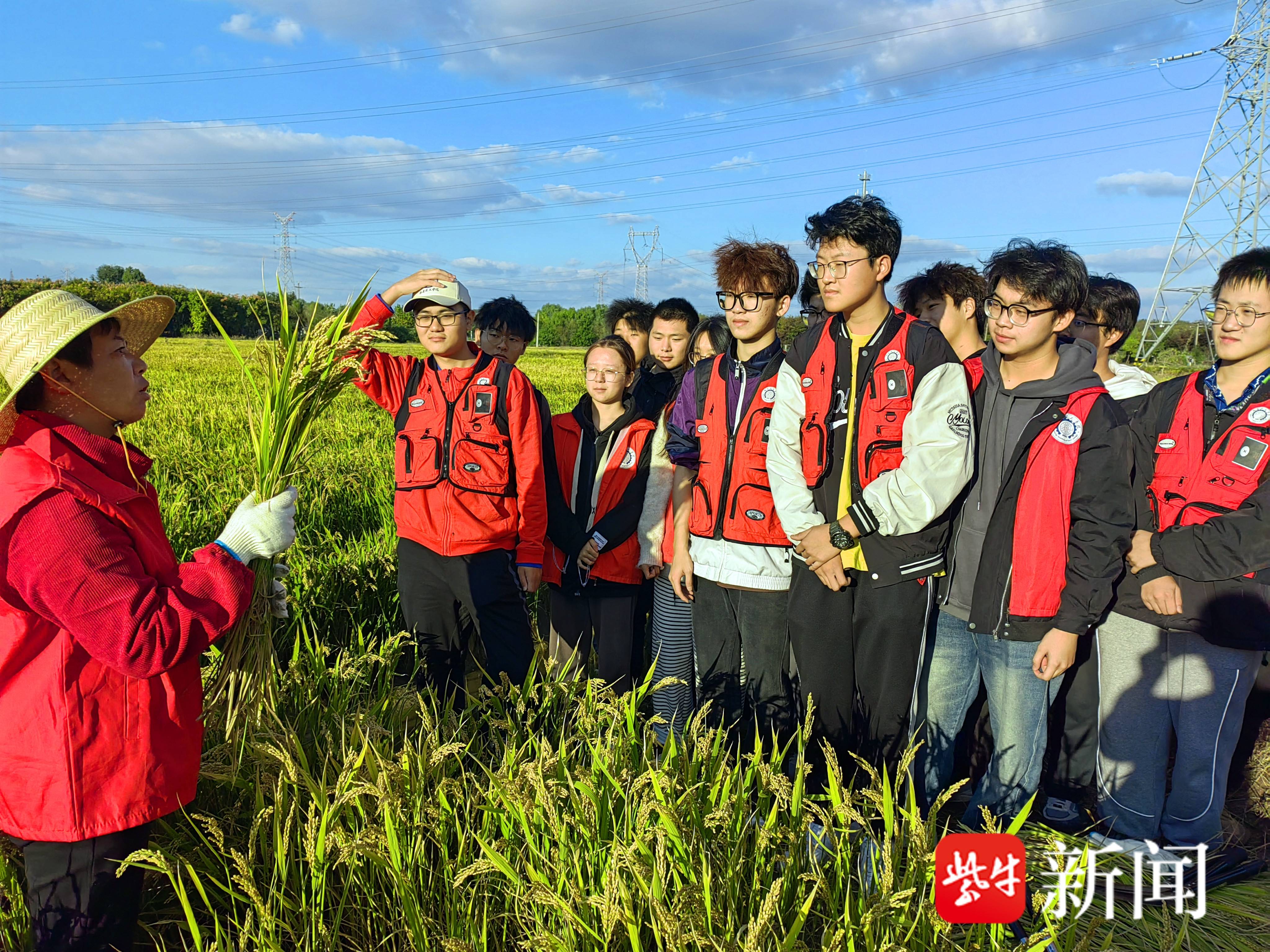 为筑牢青年的国家粮食安全观,在五星村3组的稻田边,退休村干部王美云为大学生科普水稻种植知识。“同学们,水稻成熟的标志是什么?”“你们知道水稻从播种到收获的过程吗?”一系列的提问,让学生们产生了浓厚的兴趣。学生们也积极提问,“水稻一般几月份播种?”“哪种水稻口感好?”面对接二连三的提问,王美云耐心地解答,将复杂的农耕知识变得通俗易懂。“沉浸式课堂让我们认识到粮食安全与每个人的生活息息,我们要以身作则,节约粮食、反对浪费,共同为维护国家粮食安全作出贡献。”南通理工学院机械工程学院学生李成苗有感而发。