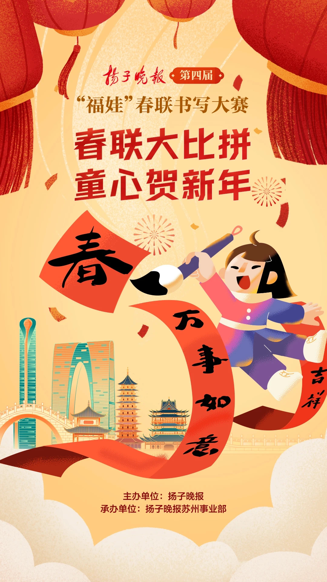 “书写”传统文化之美!苏州市草桥中学校“小小书法家”亮相扬子晚报第四届“福娃”春联书写大赛