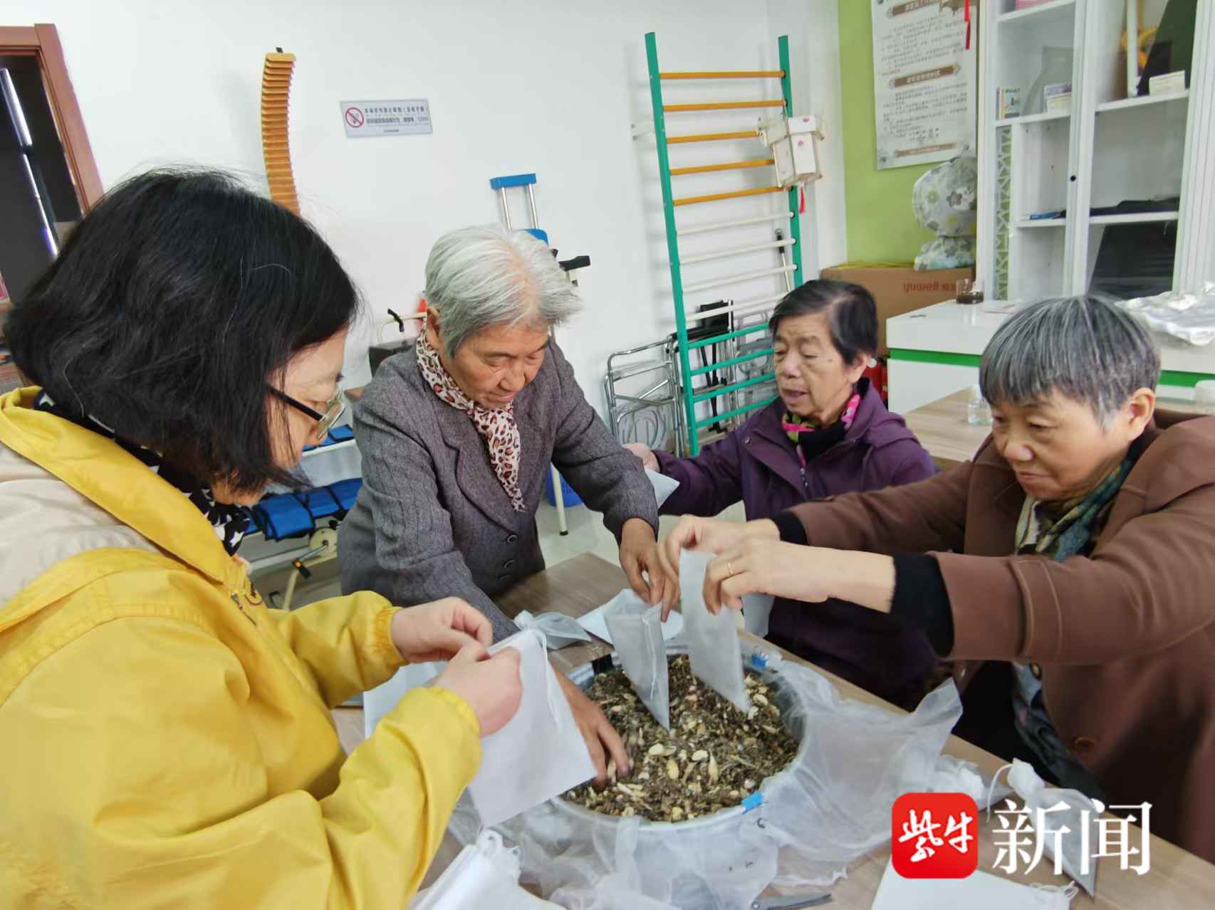 俗话说“诸病从寒起,寒从足下生”,中药足浴则是冬季养生保健的好方法。活动中,来自社区新时代文明实践站的“养生达人”朱瑛介绍了三种常规的足浴疗法:姜盐足浴、艾叶泡脚、泡脚按摩。随后,居民们还根据自身的需求,对照不同的方子,亲自尝试了中草药足浴包的制作。“我的免疫力比较弱,冬天容易感冒,因此在足浴包里特地添加了艾叶、生姜、紫苏和防风等常见中药材。”薛阿姨患有轻度肢体残疾,泡脚还能一定程度上帮助缓解肢体上的不适。