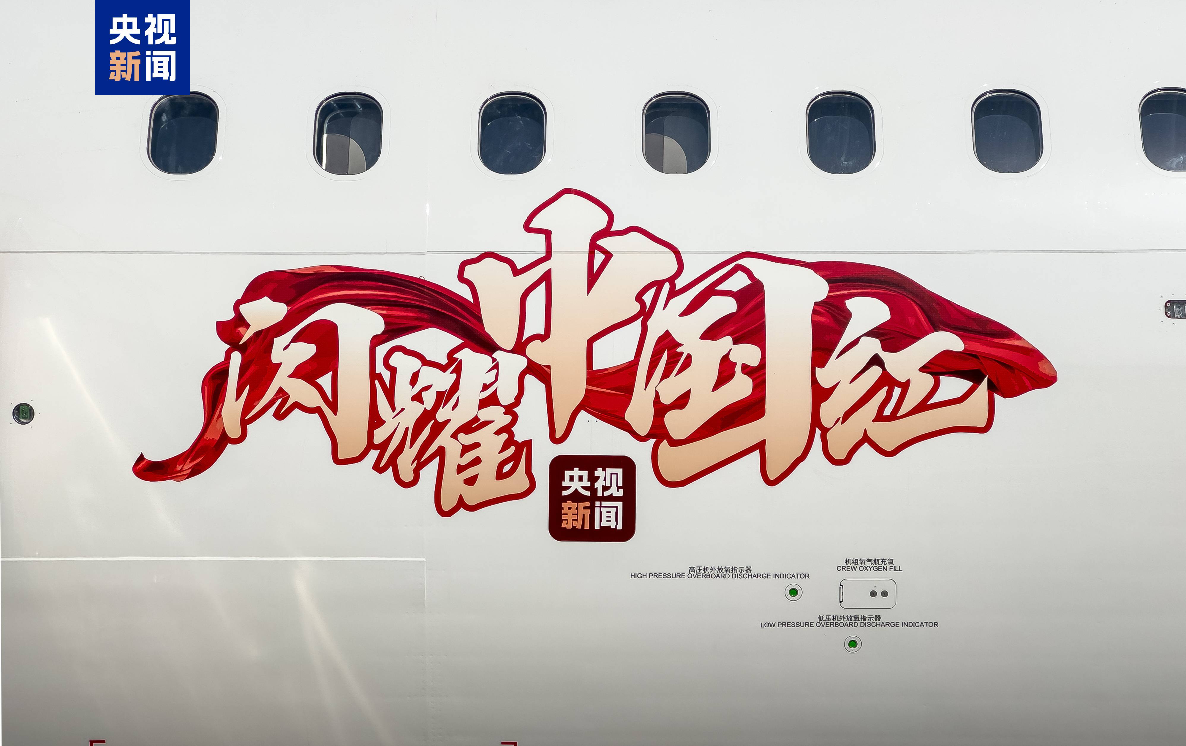 这是东航联合中央广播电视总台央视新闻推出的特别航班。执飞首航航班的C919以“新皮肤”亮相,身披“闪耀中国红”特别涂装开启新年第一飞。