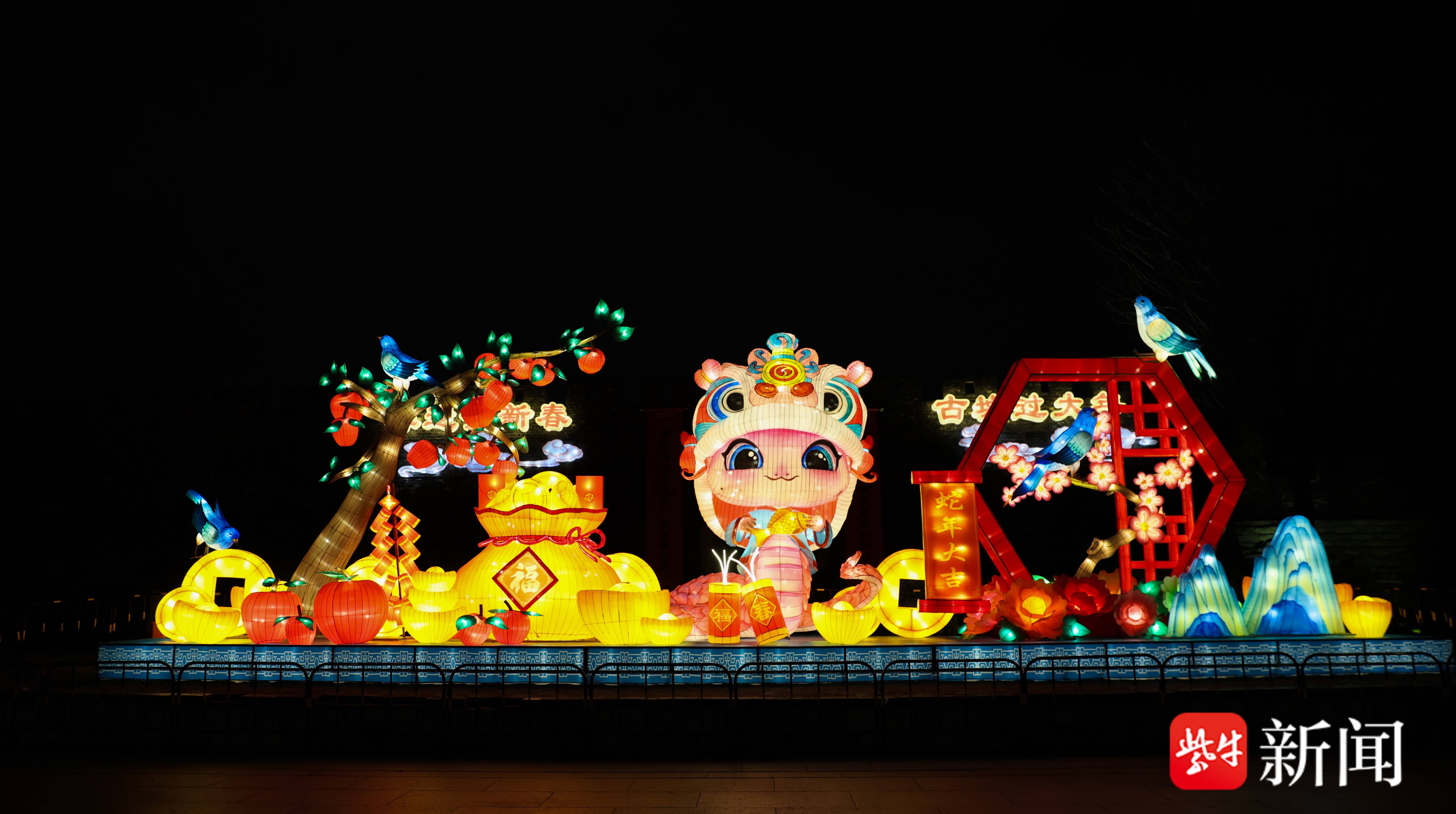 春节将至,苏州街头年味越来越浓。1月23日晚上6点,大型“瑞蛇嘉年”灯组在苏州古胥门广场正式亮灯,呈现出流光溢彩的迷人景象。扬子晚报/紫牛新闻记者在现场看到,灯组以可爱的瑞蛇为主体,聚集了苹果树、喜鹊、园林花窗、梅花树、元宝、鞭炮等多重元素,不远处还设置了由灯笼和山水画组成的苏灯组景“好运连廊”,为广大市民和游客带来了一场美轮美奂的视觉盛宴。据悉,本次元宵灯会活动将持续至2月12日。