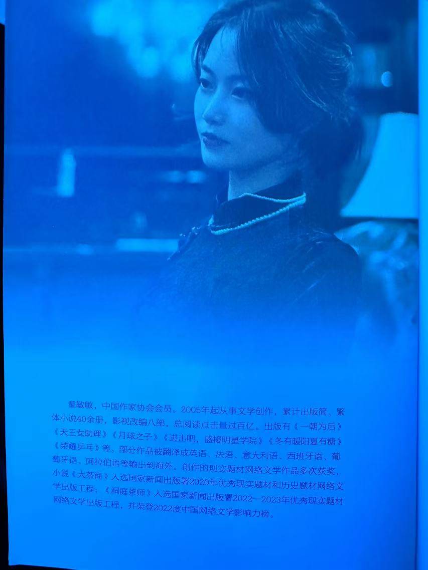 在年前一次苏州市吴江区作协年会上,笔者有幸近距离接触到了童敏敏,并被赠阅她的近作长篇小说【洞庭茶师】。她,一个看似平凡却又不凡的女性,以她的才华和努力,在网络文学的天地里书写了一段精彩的传奇。作为有三个孩子的母亲,她的外表丝毫未显岁月的痕迹,除了漂亮得体外、反而洋溢着青春的活力与优雅的气质。然而,更令人钦佩的是她在文学创作上的卓越成就。每年数百万字的产量,不仅是对文字的热爱,更是对兴趣与执着追求的体现。她的作品,如《一朝为后》、《天皇女助理》《月球之子》《进击吧,盛樱明星学院》《冬有暖阳夏有糖》《荣耀乒乓》《大茶商》《洞庭茶师》等,不仅在国内拥有庞大的读者群,更跨越国界,被翻译成英语、法国语、意大利语、西班牙语、葡萄牙语、阿拉伯语等国的多种语言,走向世界。其中,她的小说《大茶商》入选国家新闻出版署2020年优秀现实题材和历史题材网络文学出版工程;《洞庭茶师》入选国家新闻出版总署2022~2023年优秀现实题材网络文学出版工程,并荣登2022年度中国网络文学影响力榜。她这样的成就,绝非偶然,而是兴趣、禀赋与坚持共同铸就的辉煌。