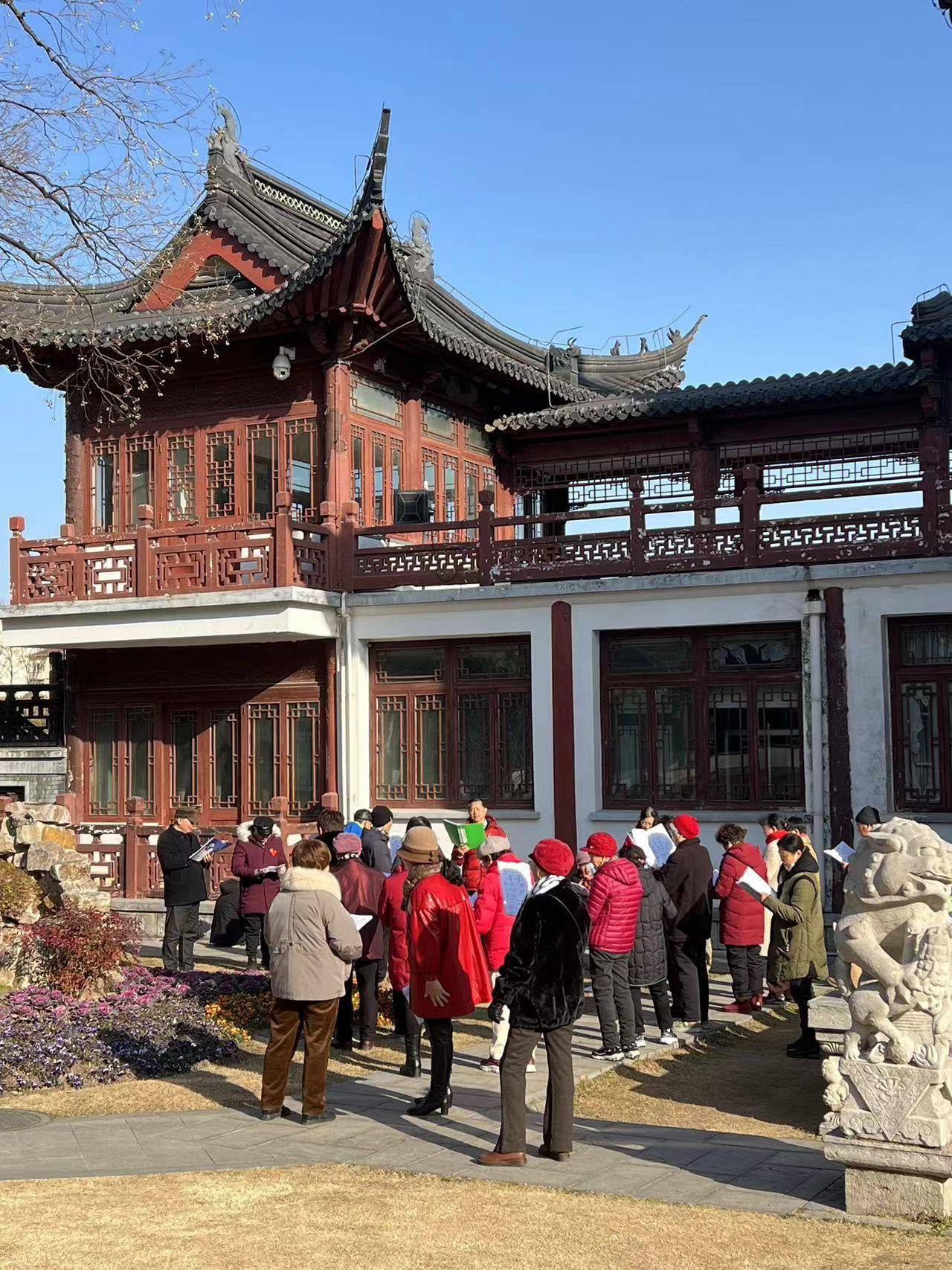 “红岩上红梅开,千里冰霜脚下踩-----”廊桥上传来的“红梅赞”的歌声,让我们浮想联翩。