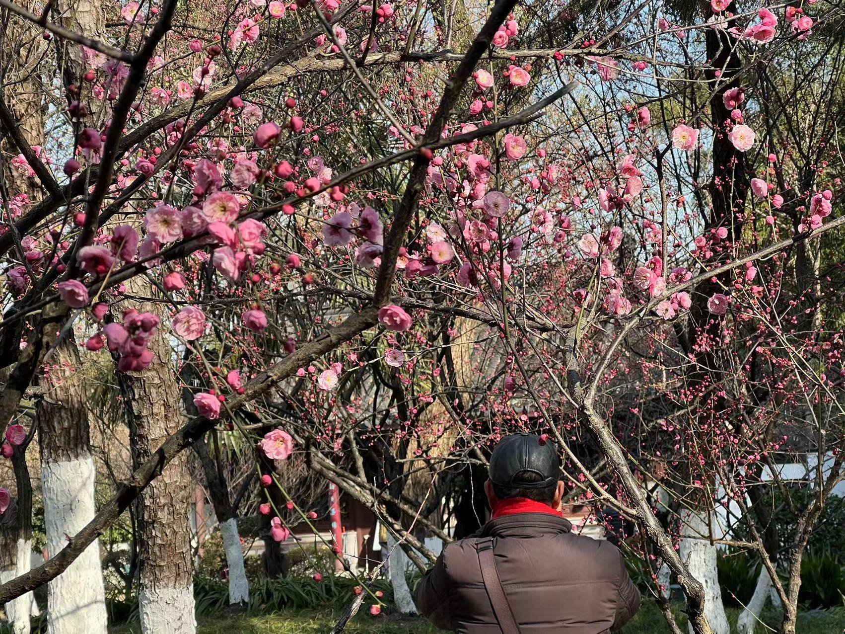 春风日渐和暖,不经意间,南京莫愁湖公园里梅花吐蕊,幽香满园。园林中古色古香的亭、台、轩、馆因有了梅花的点缀,添了一丝灵动,市民和游客们纷纷前往观赏。