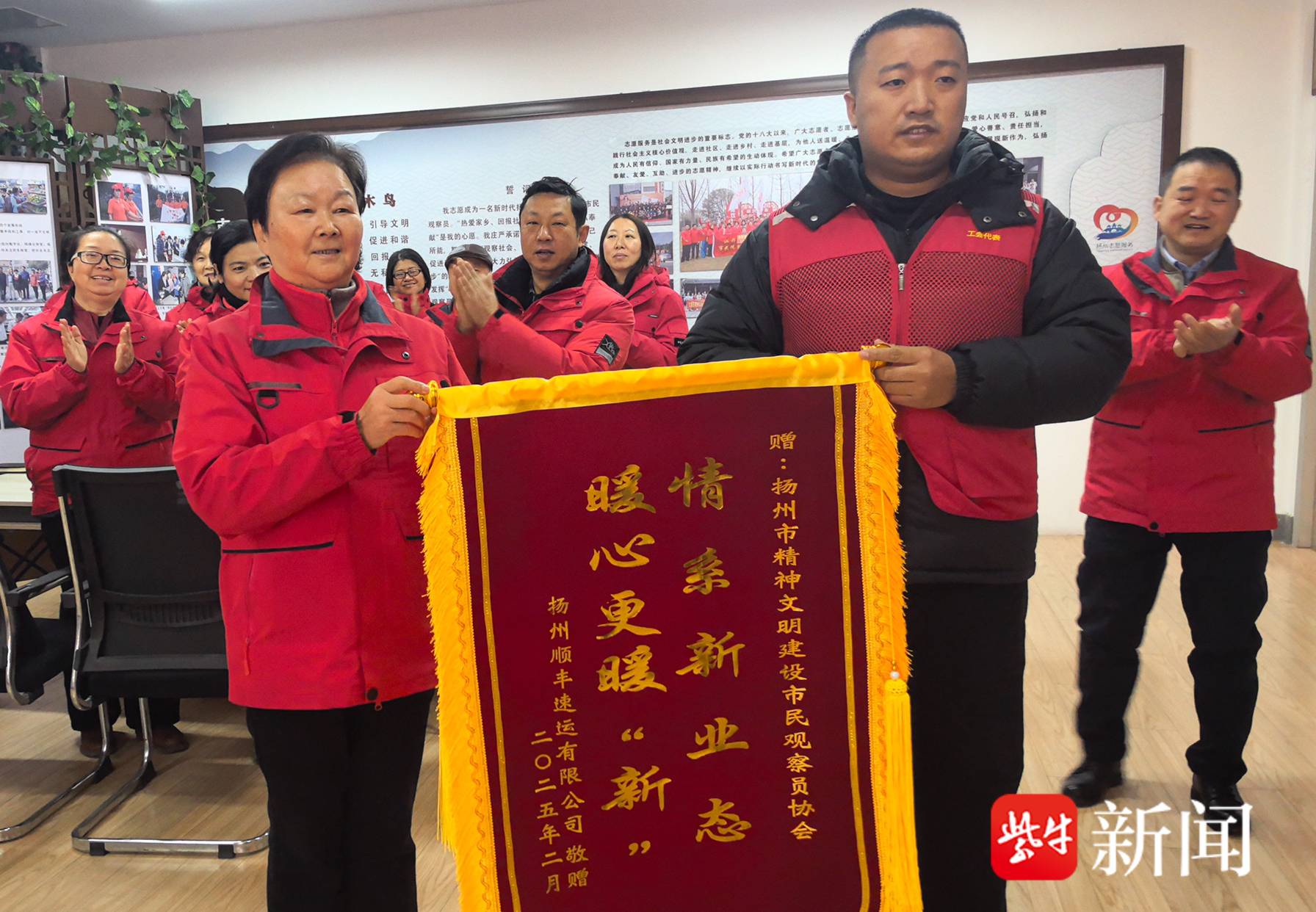 扬子晚报/紫牛新闻记者2月10日从扬州市民观察员协会获悉,上周,扬州顺丰速运有限公司荣誉工会主席黄玉坤,来到扬州市区维扬路上的扬州市民观察员协会办公室,送上了一面锦旗,表达对协会关心支持新就业群体的感激之情。锦旗上写着“情系新业态 暖心更暖‘新’”。黄玉坤说:“锦旗上的话,是我们全体小哥的心里话。”
