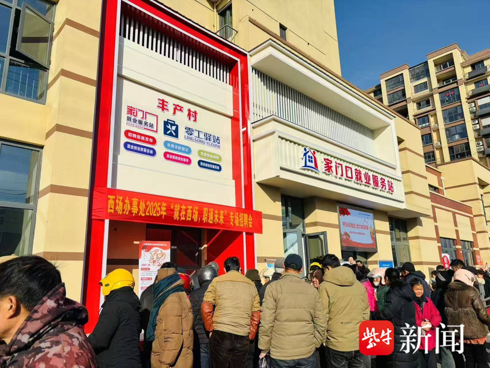 2月6日一大早,海安市城东镇西场办事处西场花苑C区沿街热闹非凡。预备上午9点开始的西场办事处2025“就在西场,职通未来”专场招聘会,八点左右就围满了人。
