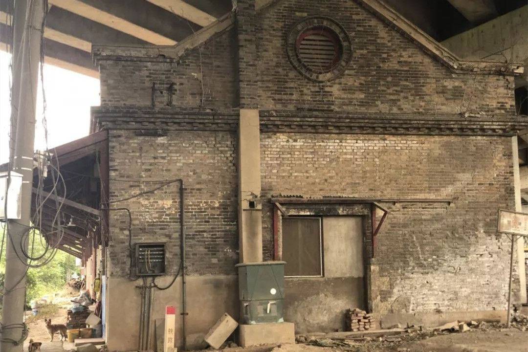 牌子旁边,有一座颇具年代感的长条形建筑,上面写着“浦镇火车站英式建筑”。浦镇火车站始建于清宣统三年(1911年),是津浦铁路最早的火车站之一。可惜的是,1986年下半年,英式老站房被拆除。现存的英式建筑,此前曾作为仓库使用,后来便闲置下来。直到2012年,它被公布为市级文物保护单位。相较于那些新建的“古建筑”,这里无疑更具参观价值,只是如今却被冷落一旁,与荒凉相伴。好在有两只忠心耿耿的黄狗守护着它,一旦见到陌生人,便会汪汪大叫。