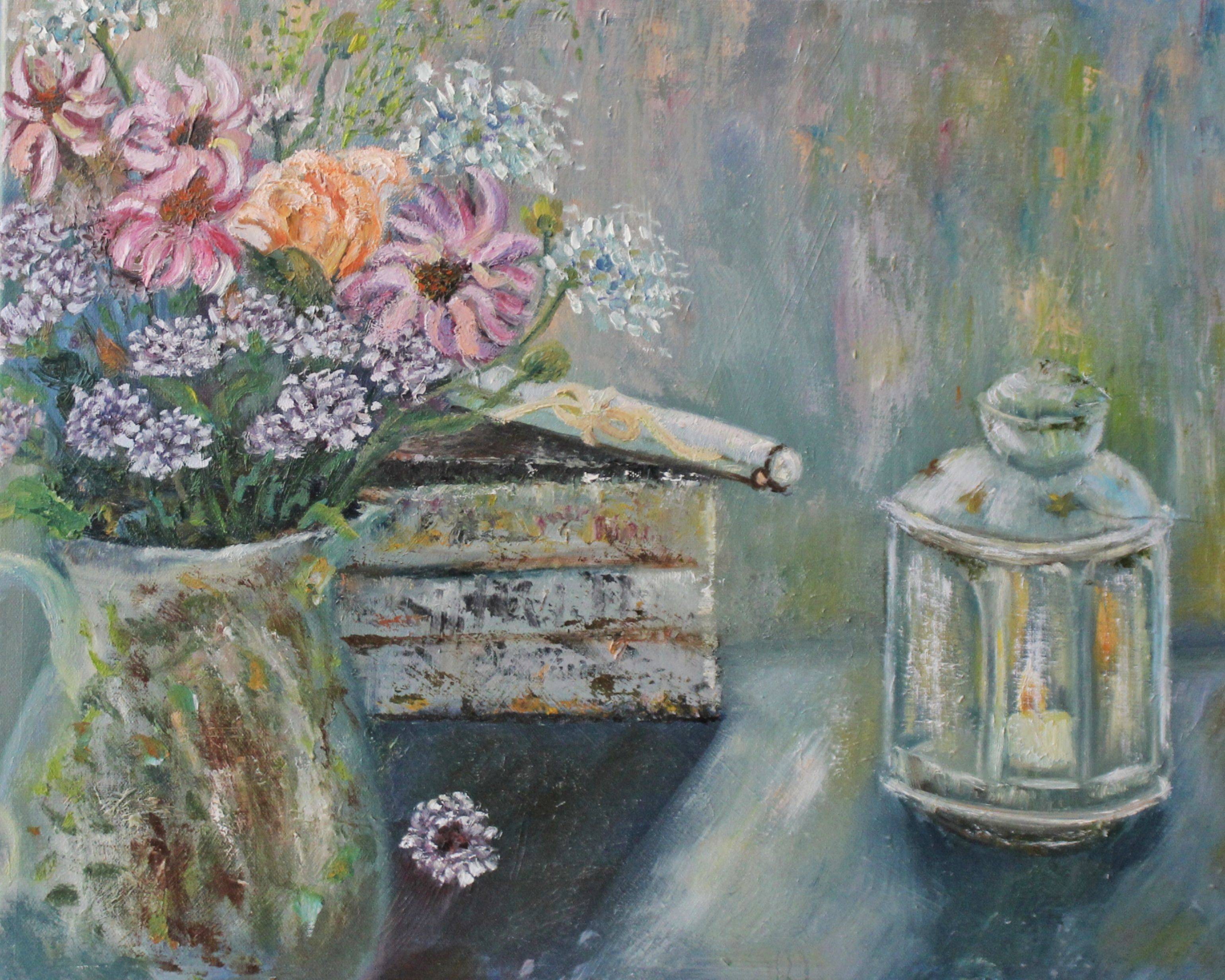 旧花瓶记忆力不旧,一场风雨过后,那些与它相濡以沫的花朵凋落了,只有一根树枝上还挂着最后的水珠,是在等着与它做最后的话别。