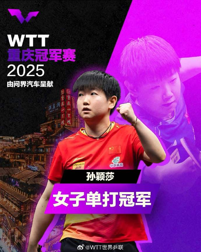 孙颖莎夺得WTT重庆冠军赛女单冠军