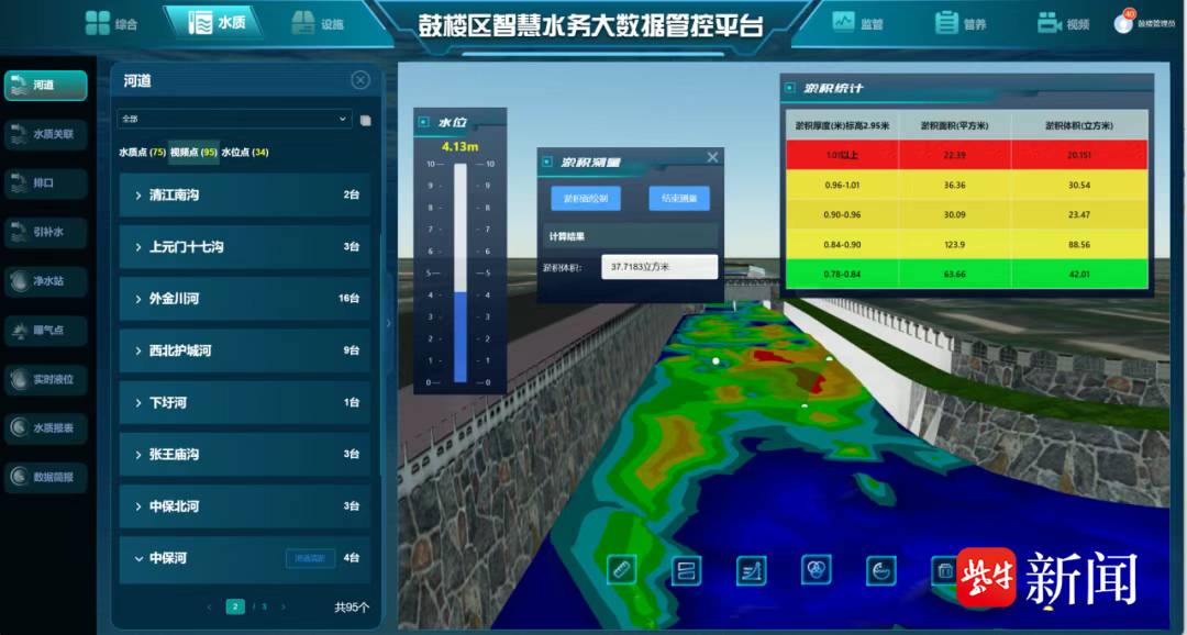沉积在河底的淤泥不仅会影响水质,底泥上翻时还会让河道的观感大打折扣。水系丰富的鼓楼区共有27条河道,清淤是水环境治理的重要一环。“过去河道什么时候要清淤,主要靠经验进行判断。”鼓楼区水务局水务设施综合养护中心负责人王思文介绍说,作业人员仅凭经验判断淤积程度,难免存在偏差,而且人工检测也无法及时捕捉河道淤积的动态变化。