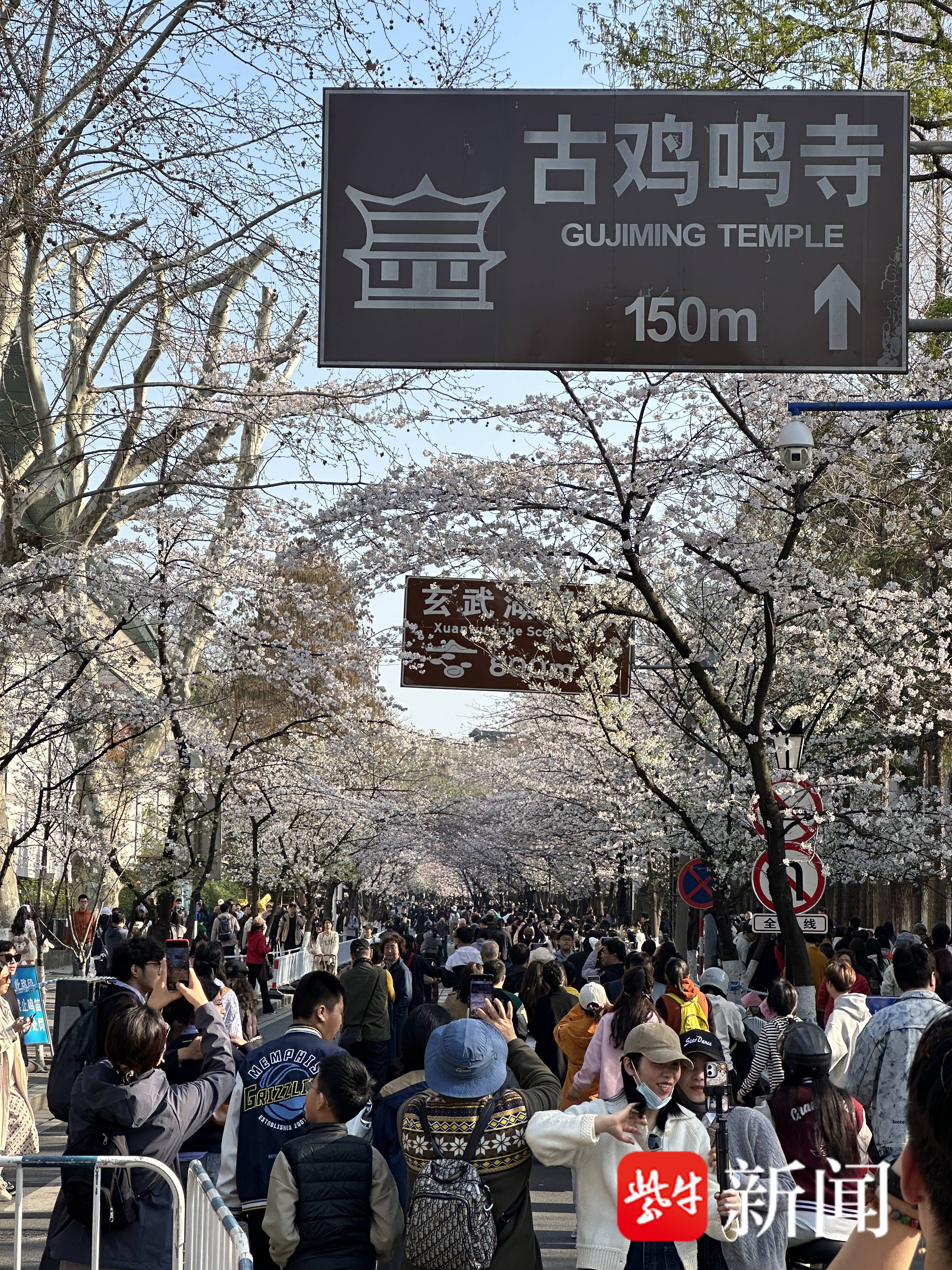 目前,鸡鸣寺路已开启"赏樱模式",建议错峰出行,共同维护景区周边安全有序的游览环境。
