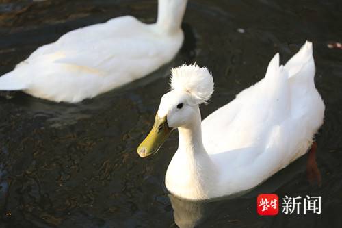 鸭中“贵族”头戴“凤冠”在南京中山植物园抢镜