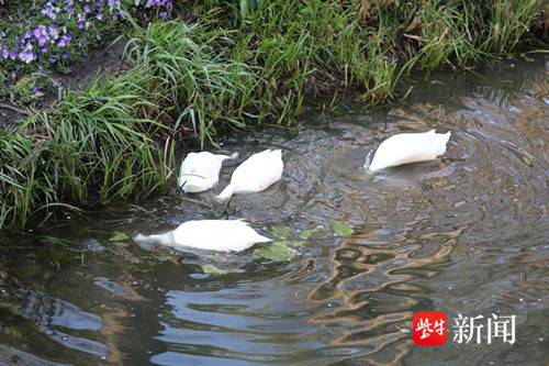南京中山植物园此时迎来郁金香的观赏期,市民游客纷纷前来踏春赏花。只见4只萌宠凤头鸭在小溪中自由自在快乐游弋,时而向东,时而向西;时而把头埋在水里,时而立起身子奋力拍翅。几只鸭界萌宠全身洁白无瑕,乌黑的喙、黄色的鸭掌,格外鲜明。最特别的是,它们头顶上那一撮洁白的毛色,很像“杀马特发型”,更宛如一顶“凤冠”。“发型”似乎也决定了颜值,甚至是“鸭运”。