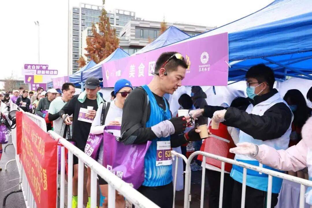 赛事终点区域的“太仓好‘市’·迎新悦动集”汇聚了30余个市集摊位。完赛运动员们纷纷在本土美食、农特产、文创手作、互动体验等区域停留,补充能量。这里还设有互动抽奖环节。同时,赛事联合全市多家景区、酒店、餐饮门店推出专属优惠,涵盖门票、住宿、餐饮等近40项惠民内容,全面覆盖“游、住、食、购”多元场景,让运动活力与消费热情共同点亮新年第一天。